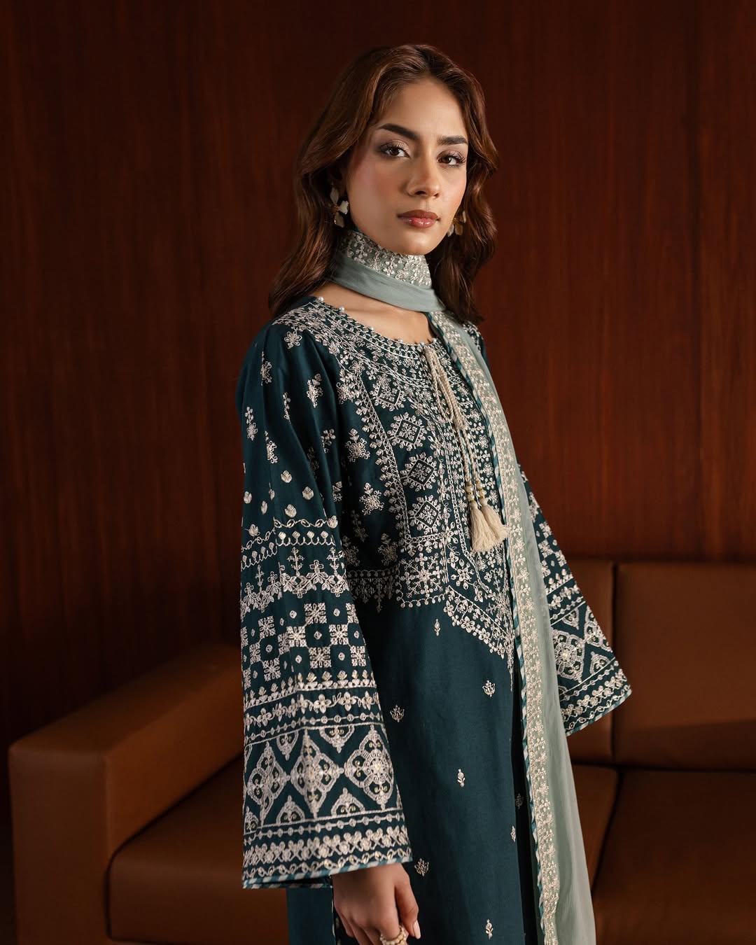 embroidered stitched 3pcs stand out with their exquisite craftsmanship. Each piece features intricate embroidery, which showcases the skill of our artisans. This traditional attire is designed not just for beauty, but also for comfort, making it perfect for various occasions. Whether you're attending a wedding or a festive gathering, this outfit ensures you will look your best. The combination of quality fabric and elegant design makes it a must-have in your wardrobe.